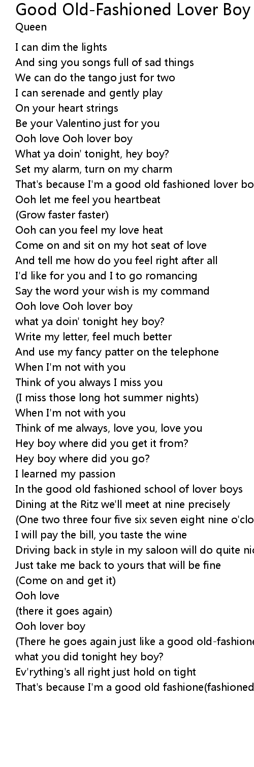 Line From The Song Good Old Fashioned Lover Boy Queen Always Will Be A Special Song For Me Songs Lyrics Good Old from i.pinimg.com Check spelling or type a new query. We did not find results for: Maybe you would like to learn more about one of these? Good old fashioned lover boy lyrics.